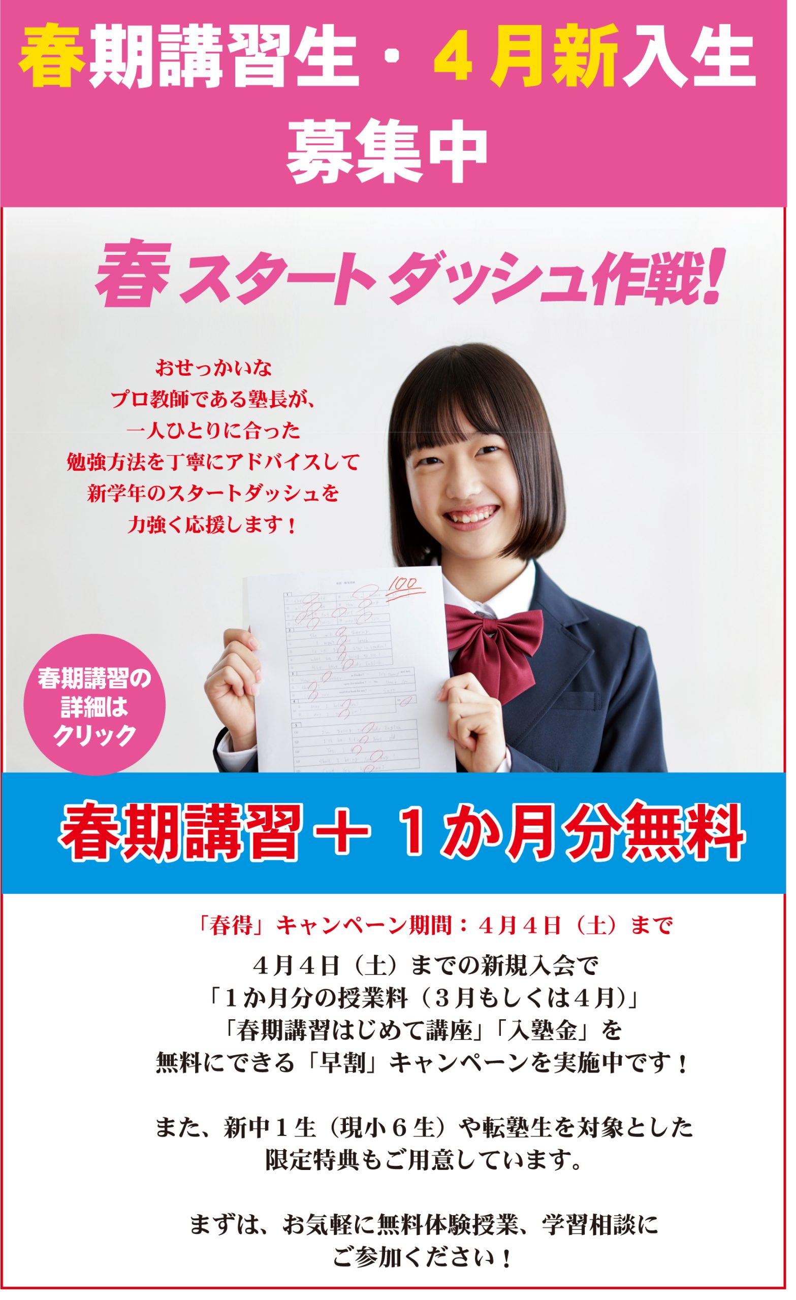新入生・春期講習生募集中!