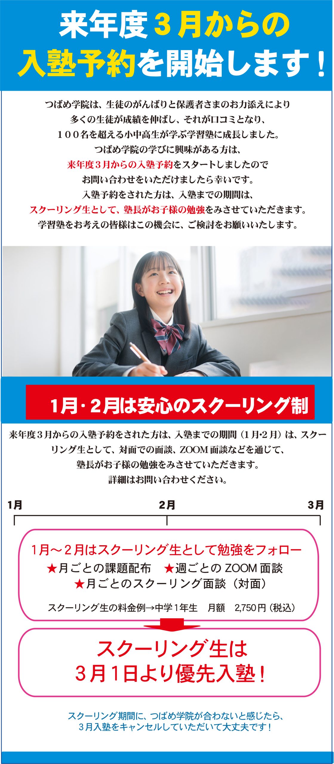 3月新入生募集中!